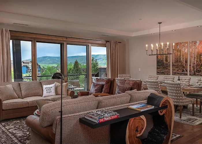 The 221 m² One Steamboat Place #419 Mount Zirkel Steamboat Springs apartment is located in Steamboat Springs, nearly a 10-minute stroll from the Arnold Barn|Arnold Barn, and boasts a hot tub. The apartment lies in the old part of Steamboat Springs, 3.7 km from the Fish Creek Falls.